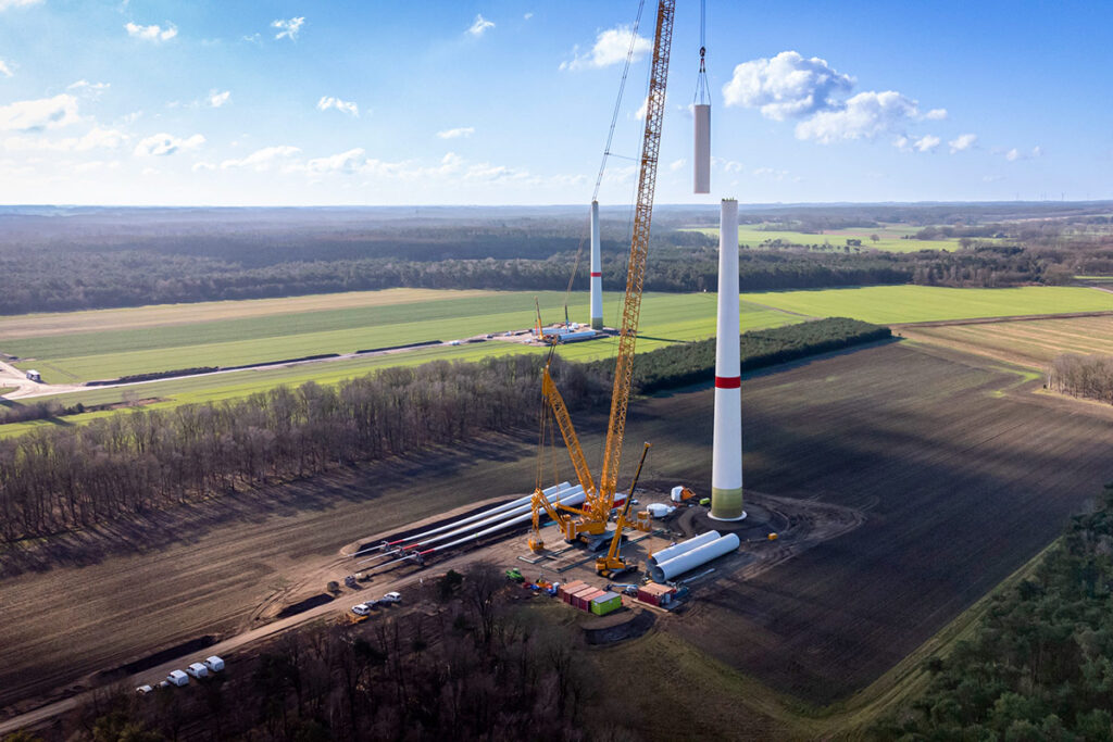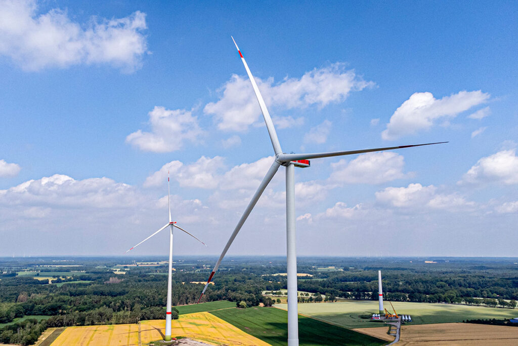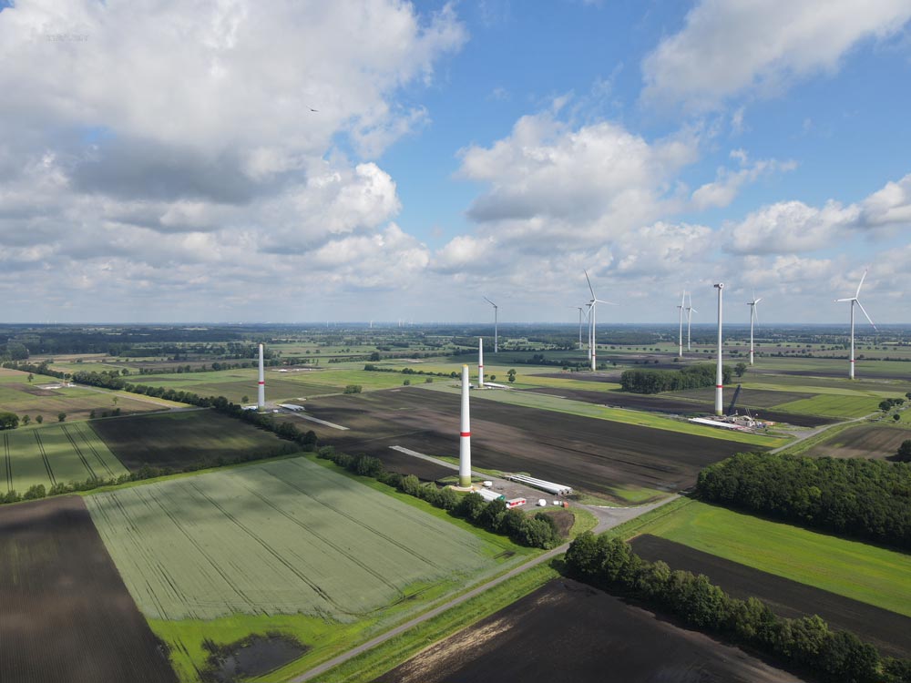 Im Windpark Süstedt betreiben wir insgesamt fünfzehn Enercon E-160 EP5 E3 mit 166,6m Nabenhöhe und jeweils 5,56 Megawatt.
